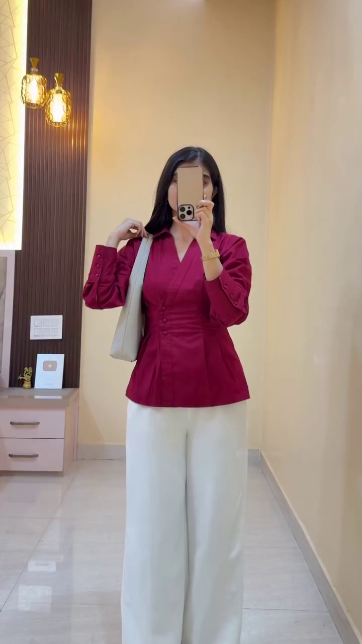 The minimalist solid design makes this maroon shirt a wardrobe essential 💕. Pair it with denim jeans 👖 for an everyday casual look, tuck it into trousers for a semi-formal appearance, or layer it under a sleeveless jacket for a chic, contemporary outfit. Its versatility allows it to suit a variety of occasions, from brunch dates ☕ and casual gatherings to office meetings 👜.