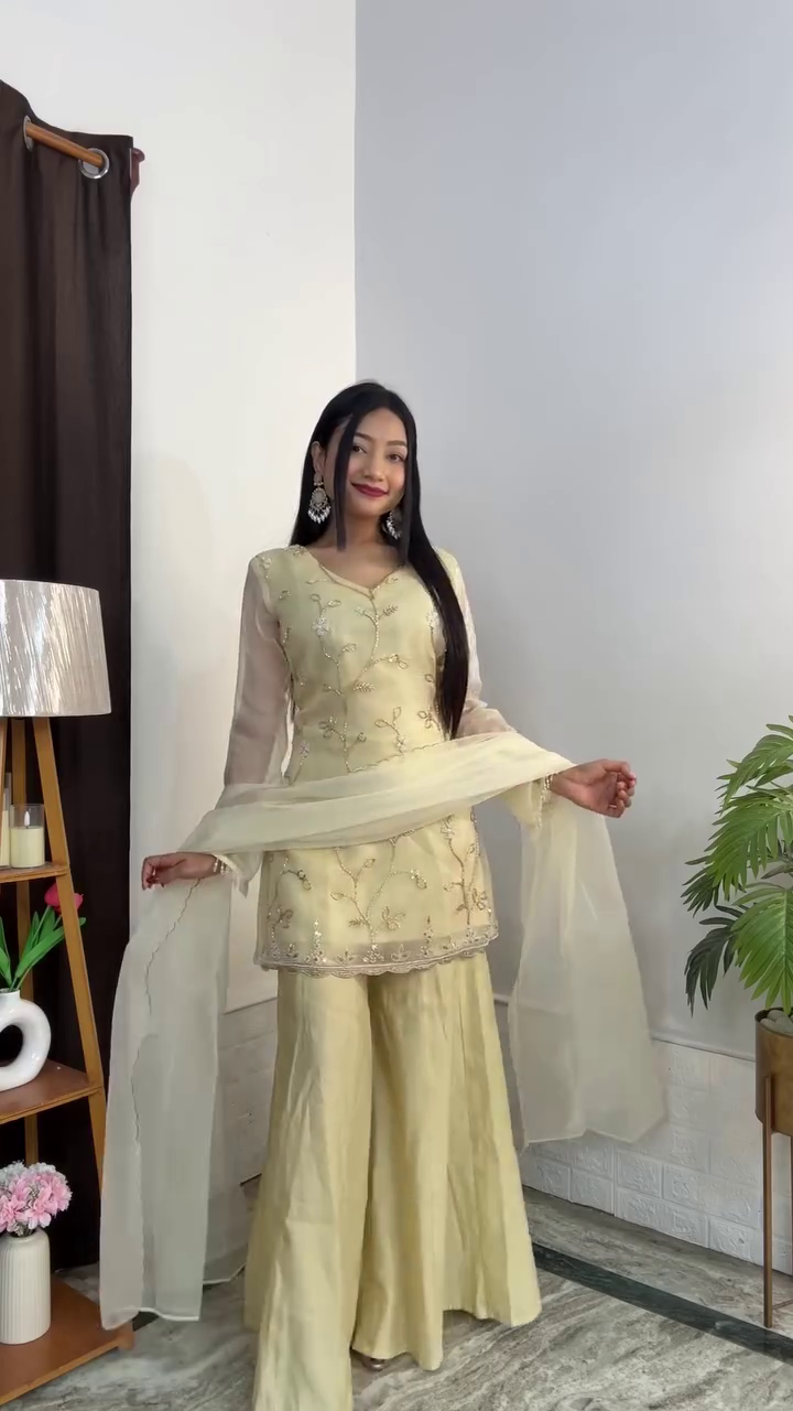 Inclusivity is key—this kurta set comes in sizes ranging from XXS to XXL, ensuring a comfortable and flattering fit for every body type 💯. The breathable organza fabric allows ease of movement, while the lightweight construction ensures you stay comfortable during long celebrations or daytime wear 🌬️.