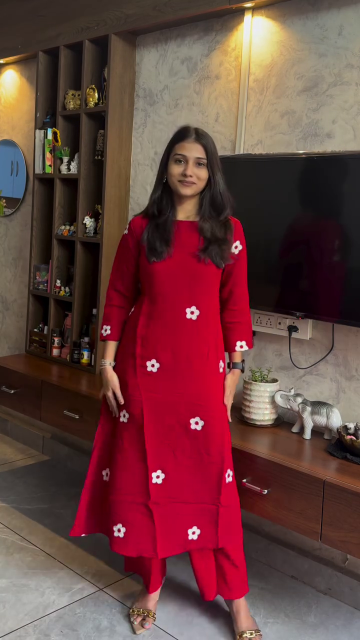 Paired with matching palazzos 👖, this set creates a harmonious and flowy silhouette. The wide-leg palazzo design offers unrestricted movement while adding a contemporary edge to the traditional kurta style. Sitting comfortably at the waist, the palazzos provide a flattering fit that complements the straight cut of the kurta. The coordinated design ensures a well-put-together look with minimal effort.