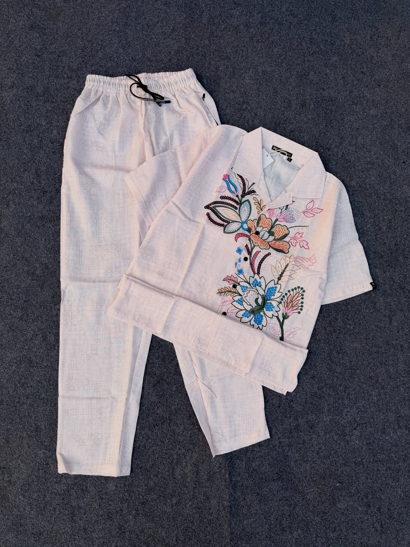 The matching trousers complete the coordinated look, offering a straight or relaxed fit that enhances comfort while maintaining style. Together, the shirt and trousers create a seamless, monochromatic outfit that looks effortlessly put-together with minimal effort. Pair with sandals or sneakers for a casual vibe, or elevate the look with loafers and subtle accessories for smart casual occasions. 👡👖