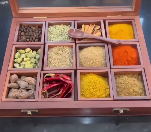 Featuring multiple individual compartments, this masala box allows you to store a variety of spices separatelyākeeping their aromas, flavors, and freshness intact. From turmeric, chili powder, cumin, and coriander to cardamom, cloves, and fennel seeds, each spice has its own dedicated space for easy access while cooking. The thoughtfully designed layout helps you cook faster and more efficiently. š¶ļøš¾