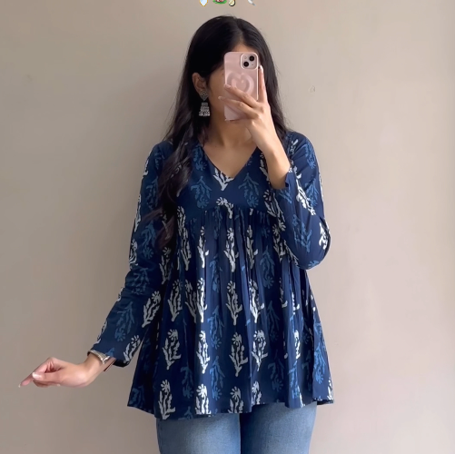 Crafted in a rich midnight blue shade, this top features delicate white floral-inspired prints that create a striking yet sophisticated contrast πΏπ€. The gathered flare design flows beautifully from the yoke, offering a relaxed, breezy fit that flatters all body types. Whether youβre heading out for brunch β, running errands ποΈ, attending casual meetings πΌ, or meeting friends for dinner π½οΈ, this versatile piece transitions seamlessly through your day.