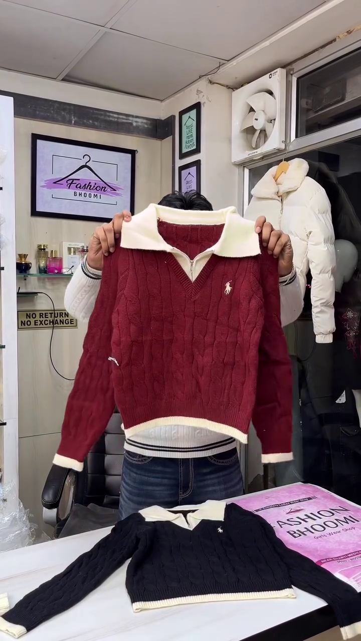 The standout feature of this piece is its polo-style collar with a half-zip neckline, offering a perfect balance between casual and semi-formal wear. The contrast collar detail enhances its classic appeal, making it suitable for office wear, casual outings, family gatherings, or evening meetups. The ribbed cuffs and hem provide a snug fit while adding a clean, structured finish. β¨π€