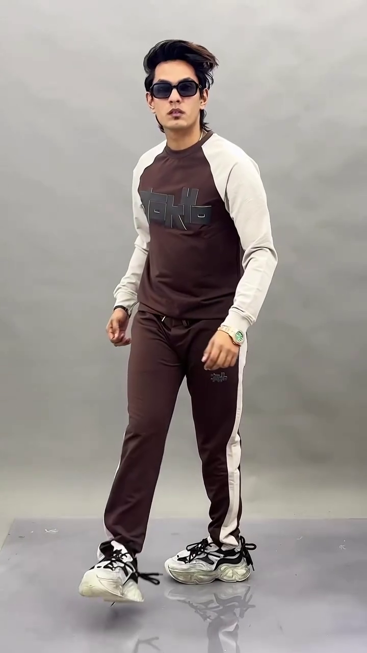 The rich brown tone offers a stylish alternative to standard neutrals, giving the track suit a contemporary edge while remaining versatile for casual styling. The jacket typically features a zip closure, high collar, and pockets for convenience, while the track pants come with an adjustable waistband and tapered or straight-leg fit for a streamlined, athletic look.