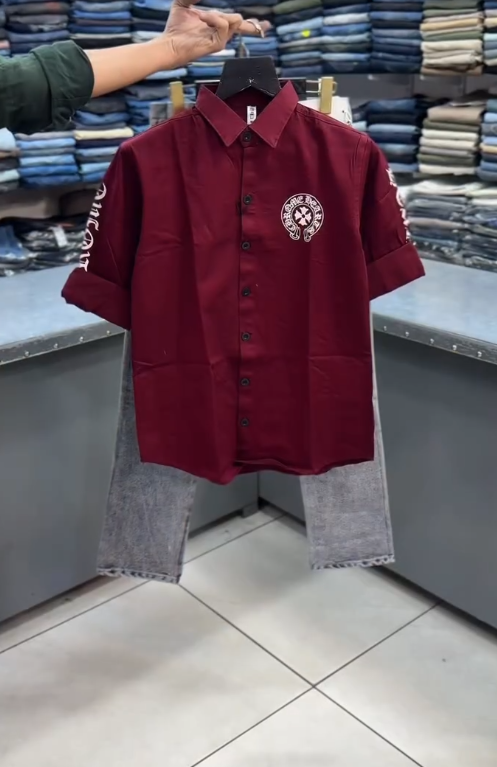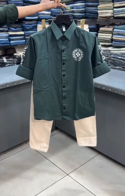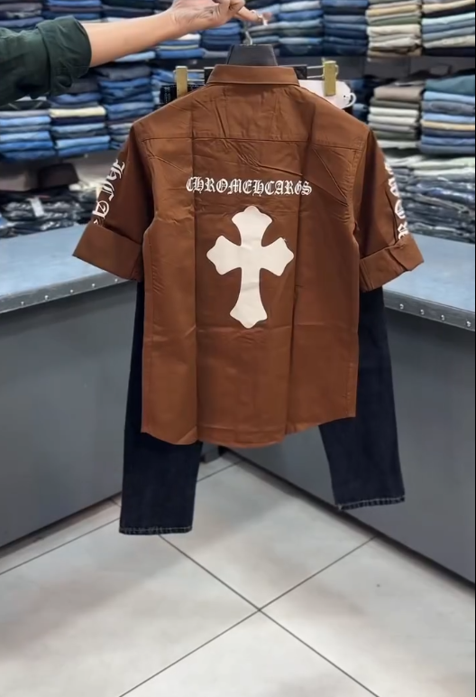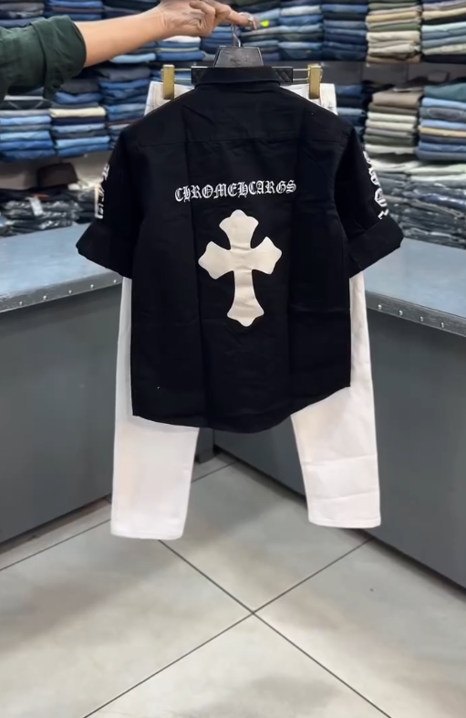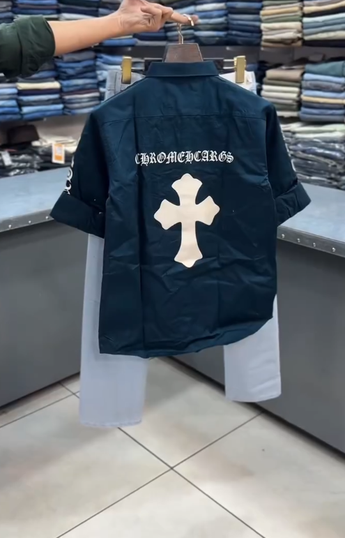 The patchwork shirt is the centerpiece, featuring contrasting fabrics, textures, and Chrome Heart-inspired motifs that create a visually dynamic, standout look. Crafted from high-quality cotton or cotton blends, the shirt is soft, breathable, and comfortable for all-day wear. The relaxed fit and structured collar maintain a modern silhouette, while button-down closure adds classic functionality.