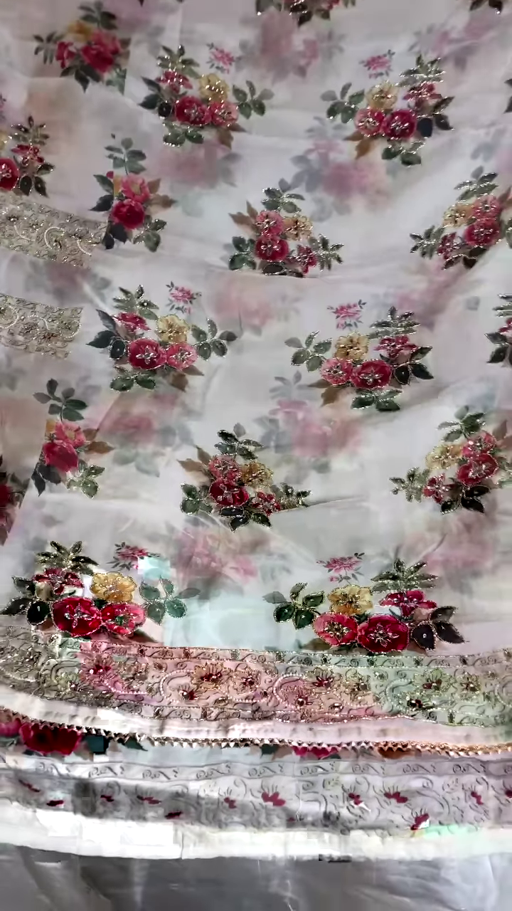 Crafted from soft tissue silk, this saree drapes beautifully, offering a lightweight yet luxurious feel that ensures comfort and ease. The sheer texture of the tissue silk adds a delicate, ethereal quality to the saree, creating a soft, glowing effect that enhances the overall appeal. The white hue serves as a perfect canvas, highlighting the intricate embellishments and intricate craftsmanship, making this saree a stunning choice for brides or guests at formal events.